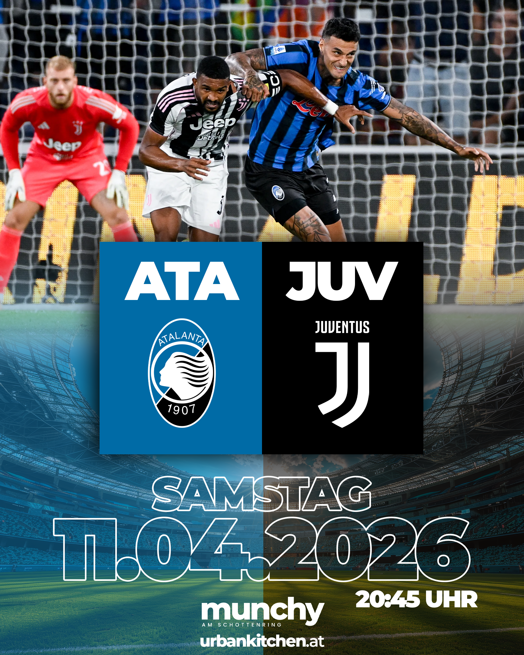 Ein intensives Topspiel der Serie A erwartet dich live bei Munchy am Schottenring: Atalanta trifft auf Juventus – Offensivpower, Tempo und mutiger Fußball gegen Erfahrung, Struktur und taktische Disziplin. Beide Teams stehen für unterschiedliche Spielstile, die in diesem Duell aufeinandertreffen und für ein spannendes, dynamisches Spiel sorgen. Jeder Angriff kann entscheidend sein und jede Aktion das Spiel in eine neue Richtung lenken.