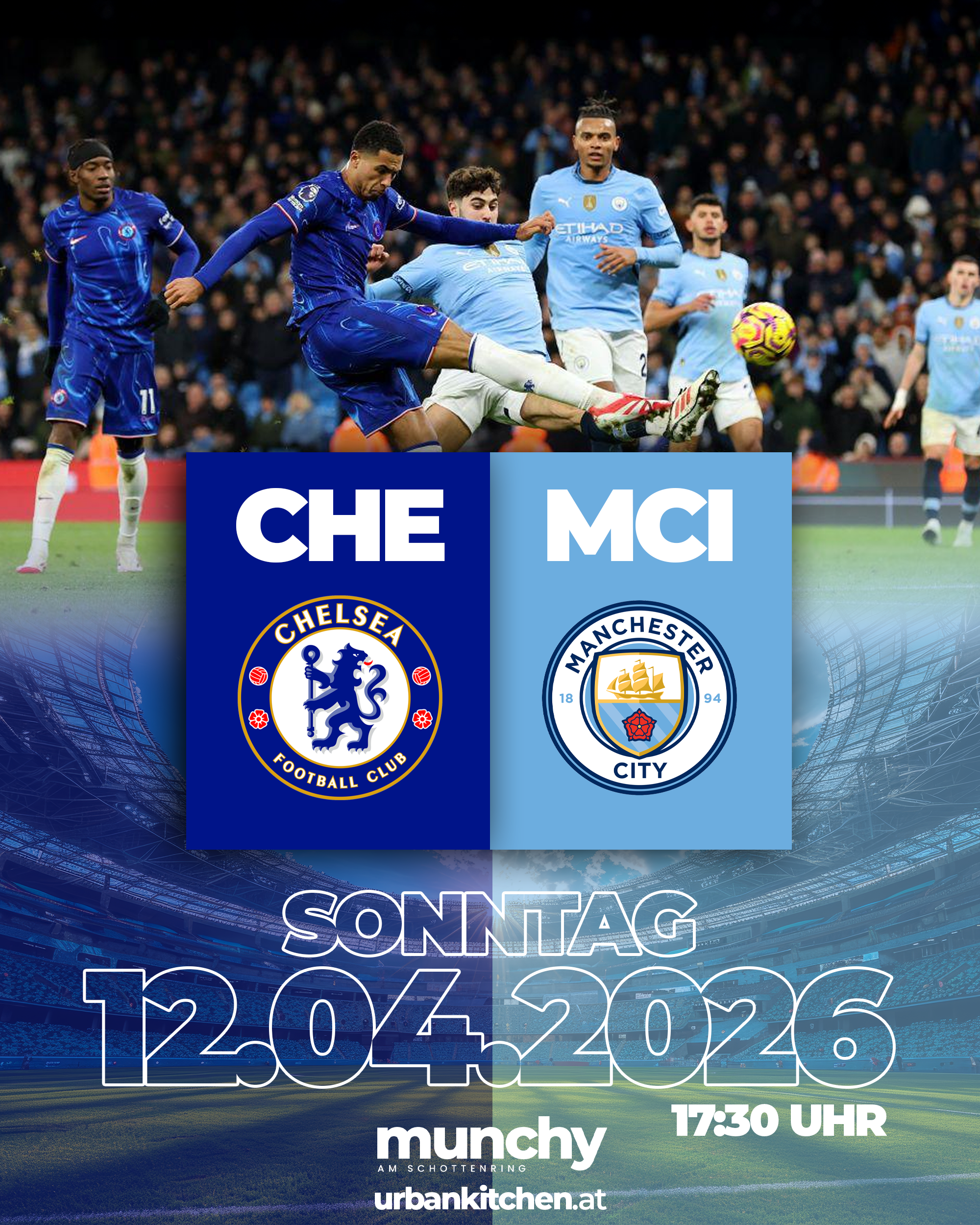 Sichere dir deinen Platz und erlebe Chelsea gegen Manchester City live bei Munchy am Schottenring.