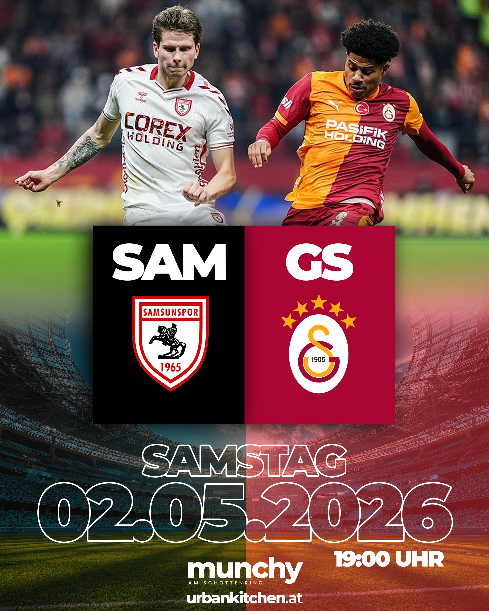 Am Samstag, den 02.05.2026, steht ein besonderes Spiel für alle Galatasaray-Fans an: Die Gelb-Roten reisen nach Samsun und haben die große Chance, einen weiteren entscheidenden Schritt Richtung Meisterschaft zu machen. Auswärts gegen Samsunspor wird es kein leichtes Spiel – doch genau solche Spiele definieren eine Saison. Spannung, Emotion und pure Leidenschaft sind garantiert.