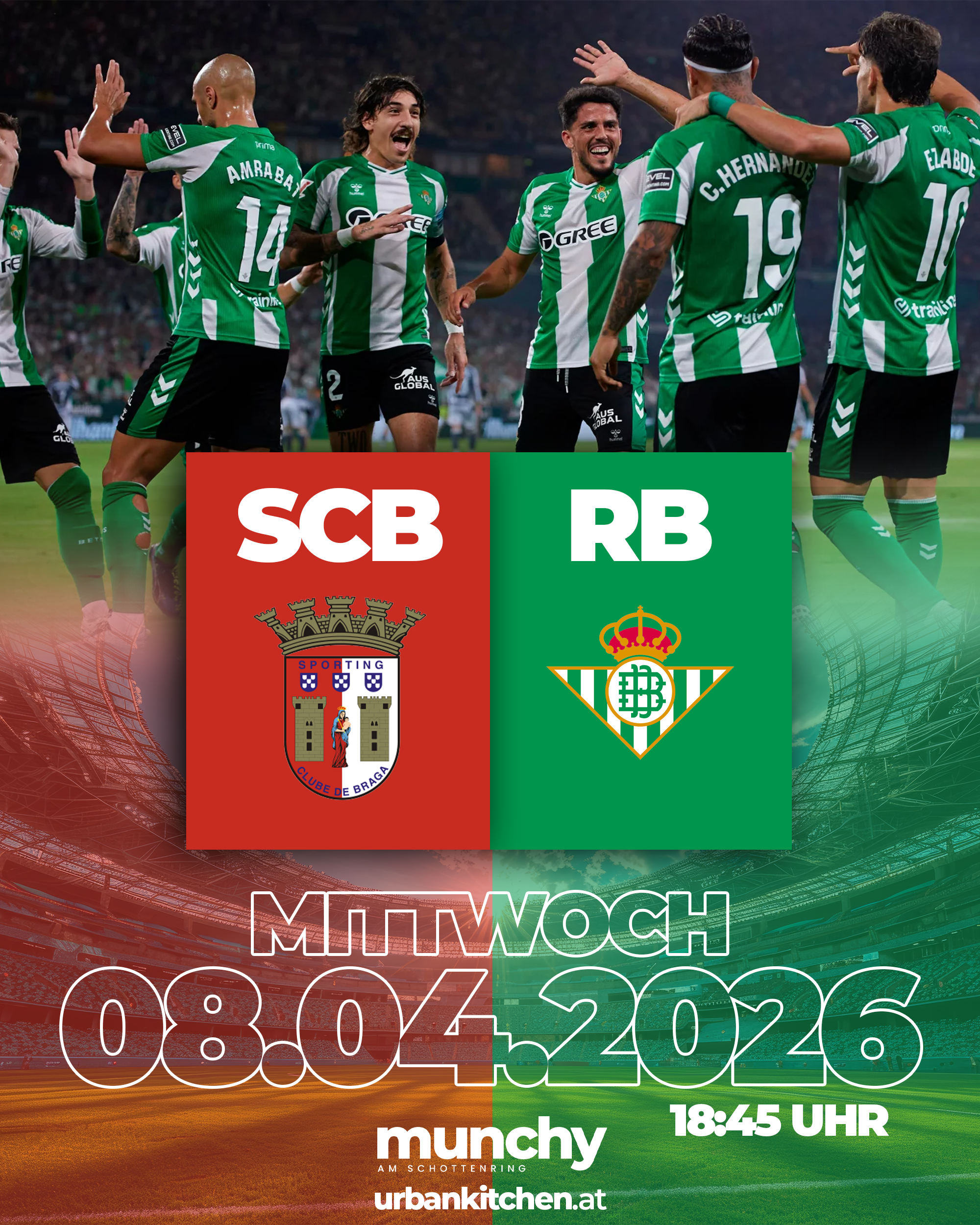 Erlebe Braga gegen Real Betis live bei Munchy am Schottenring und genieße ein intensives Europa-League-Duell mit starker Atmosphäre und echtem Stadionfeeling mitten in Wien.