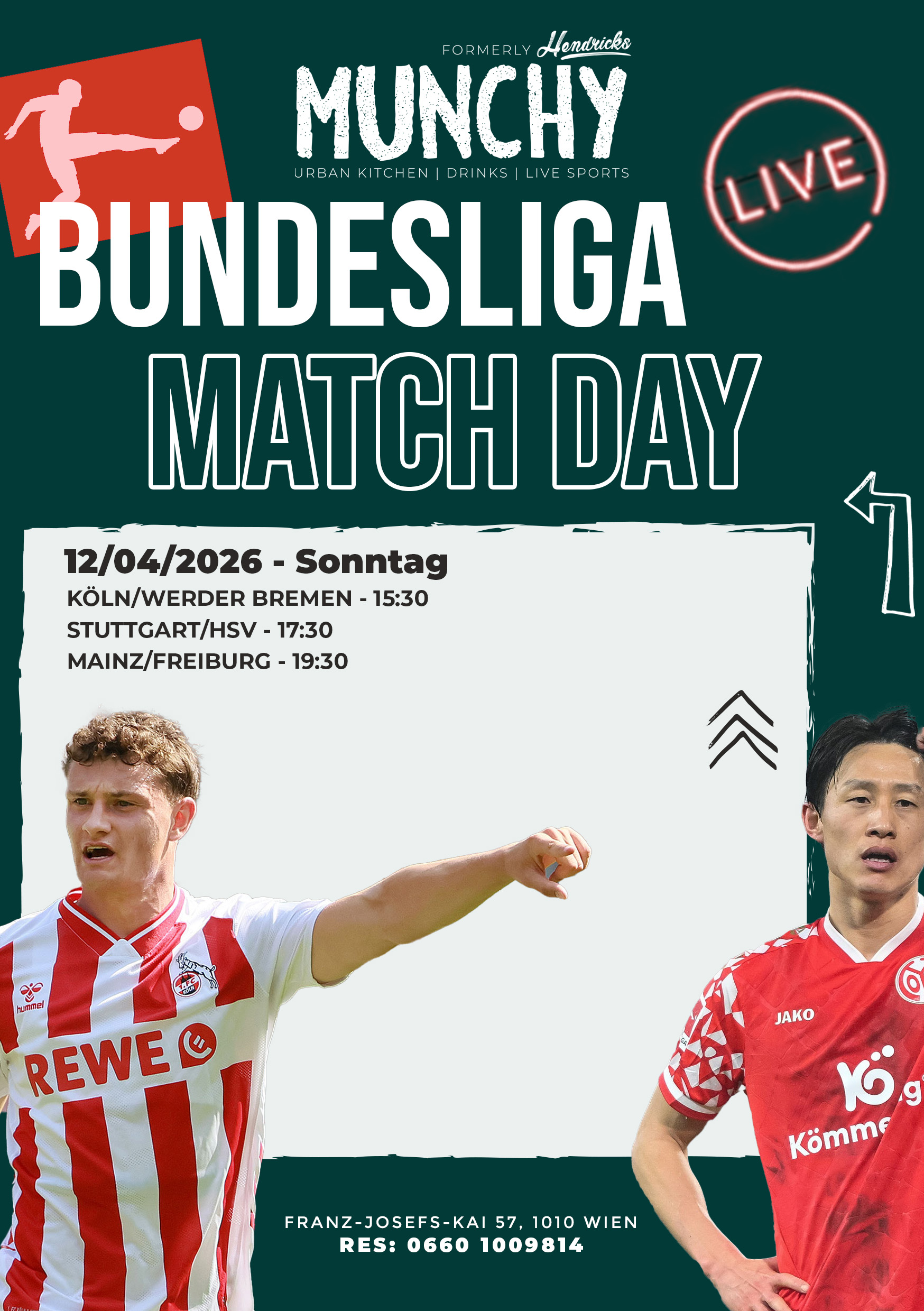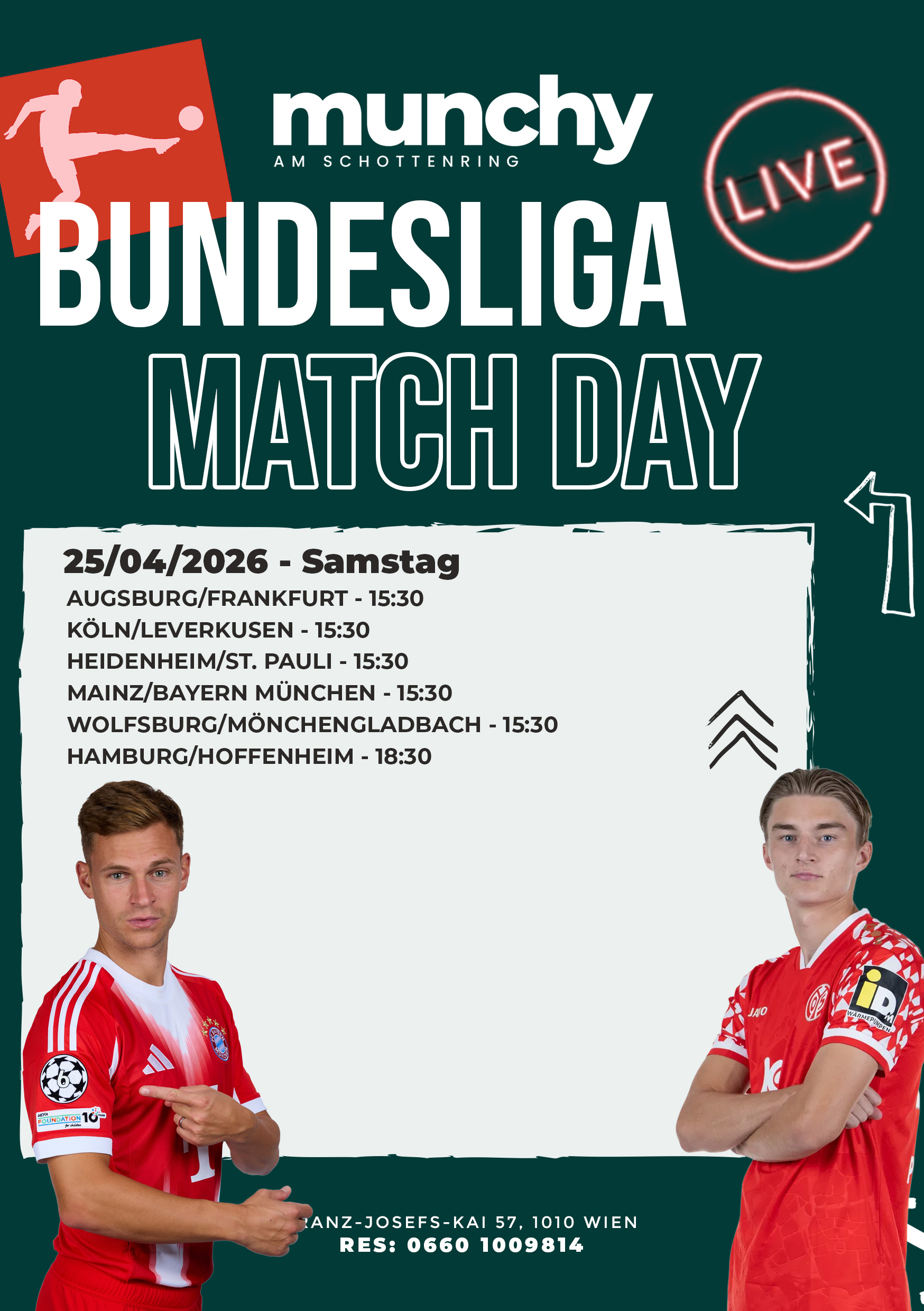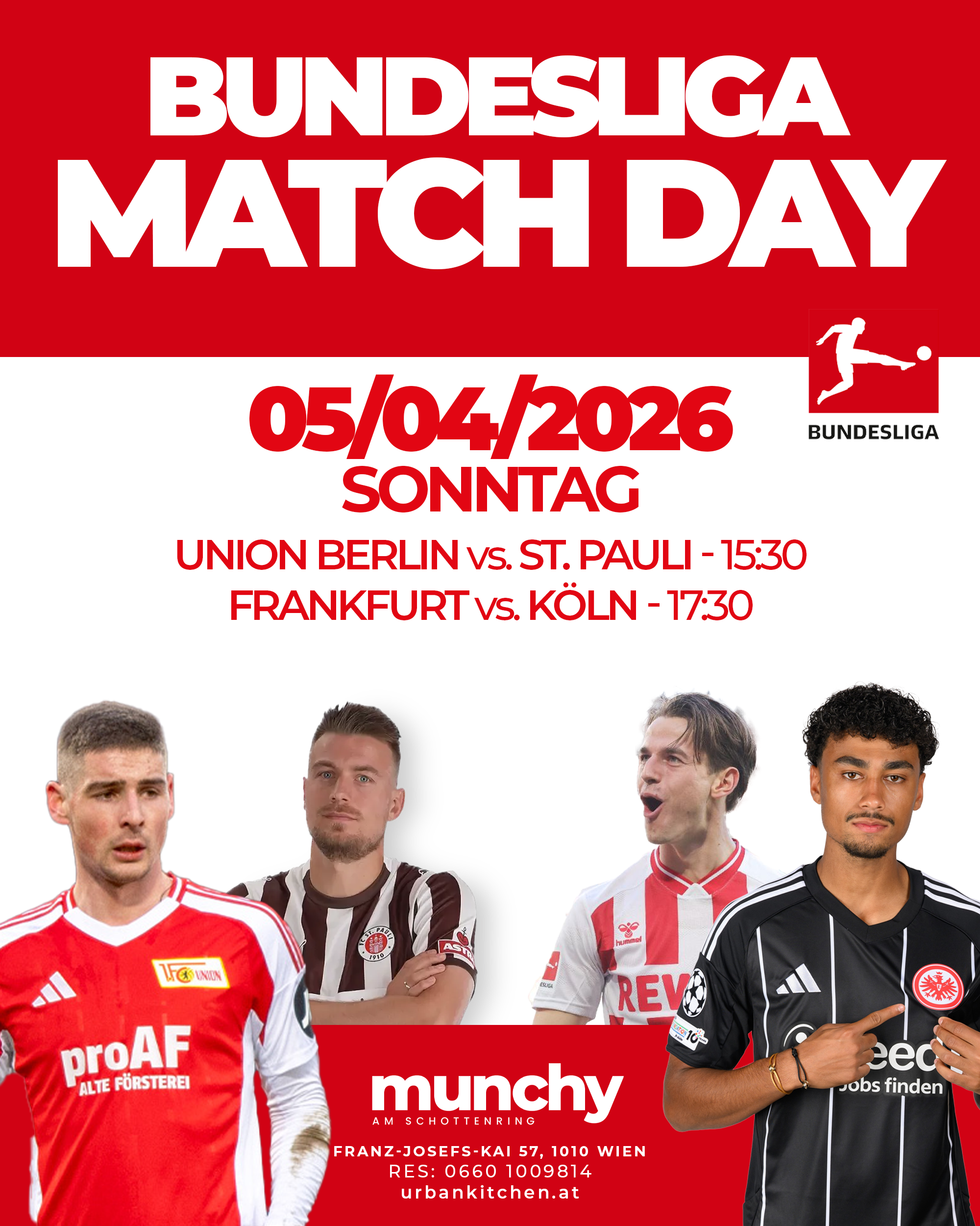 Erlebe den Bundesliga Matchday mit mehreren Topspielen, großer Leinwand und echter Stadionatmosphäre live im Munchy am Schottenring.