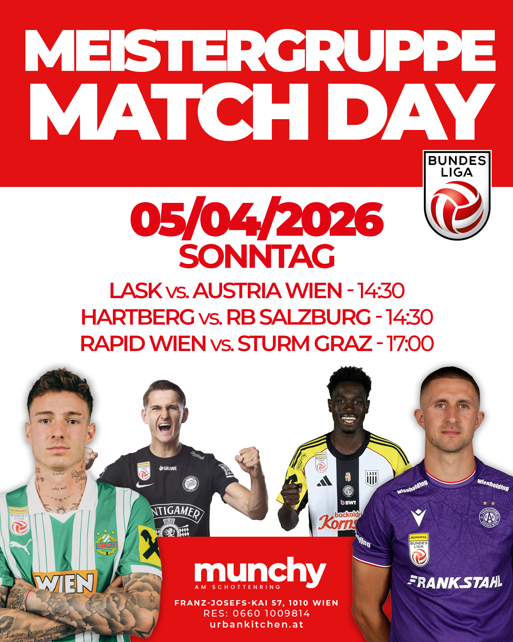 Erlebe den Bundesliga Match Day live bei Munchy am Schottenring mit intensiven Duellen, mitreißender Atmosphäre und echtem Stadionfeeling mitten in Wien.