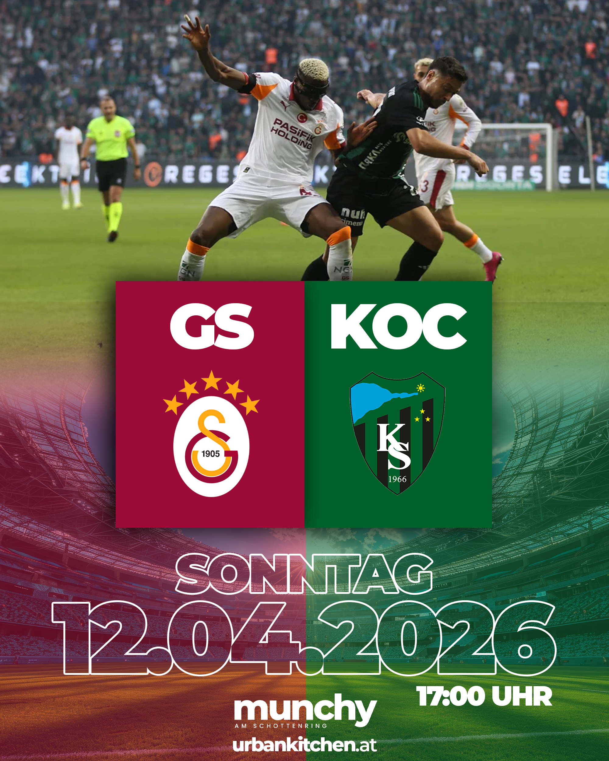 Erlebe Galatasaray gegen Kocaelispor live bei Munchy am Schottenring und genieße ein intensives Fußballerlebnis mit echter Stadionatmosphäre in Wien.