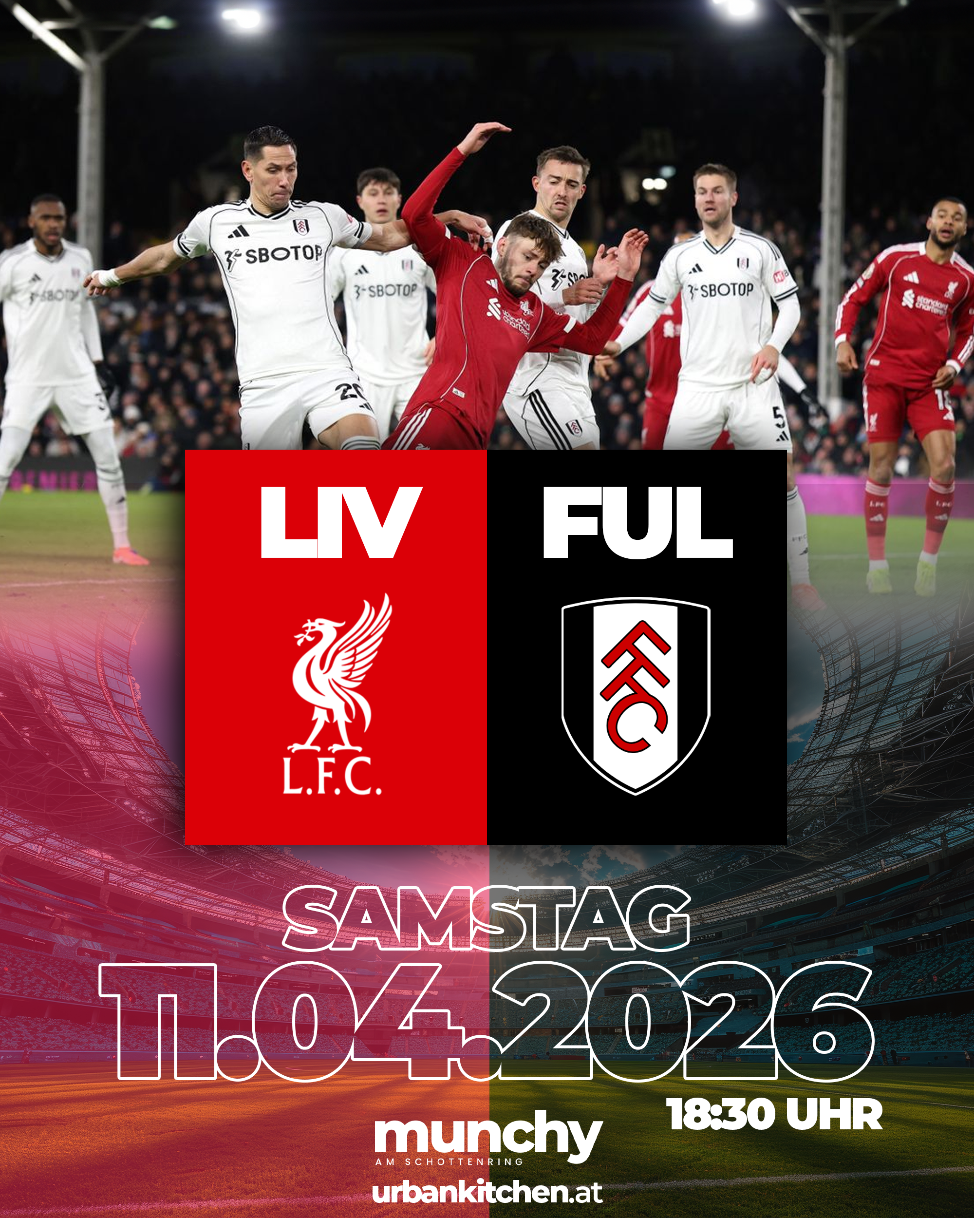 Erlebe Liverpool gegen Fulham live bei Munchy am Schottenring und genieße ein intensives Premier-League-Duell mit elektrisierender Atmosphäre und echtem Stadionfeeling mitten in Wien. |