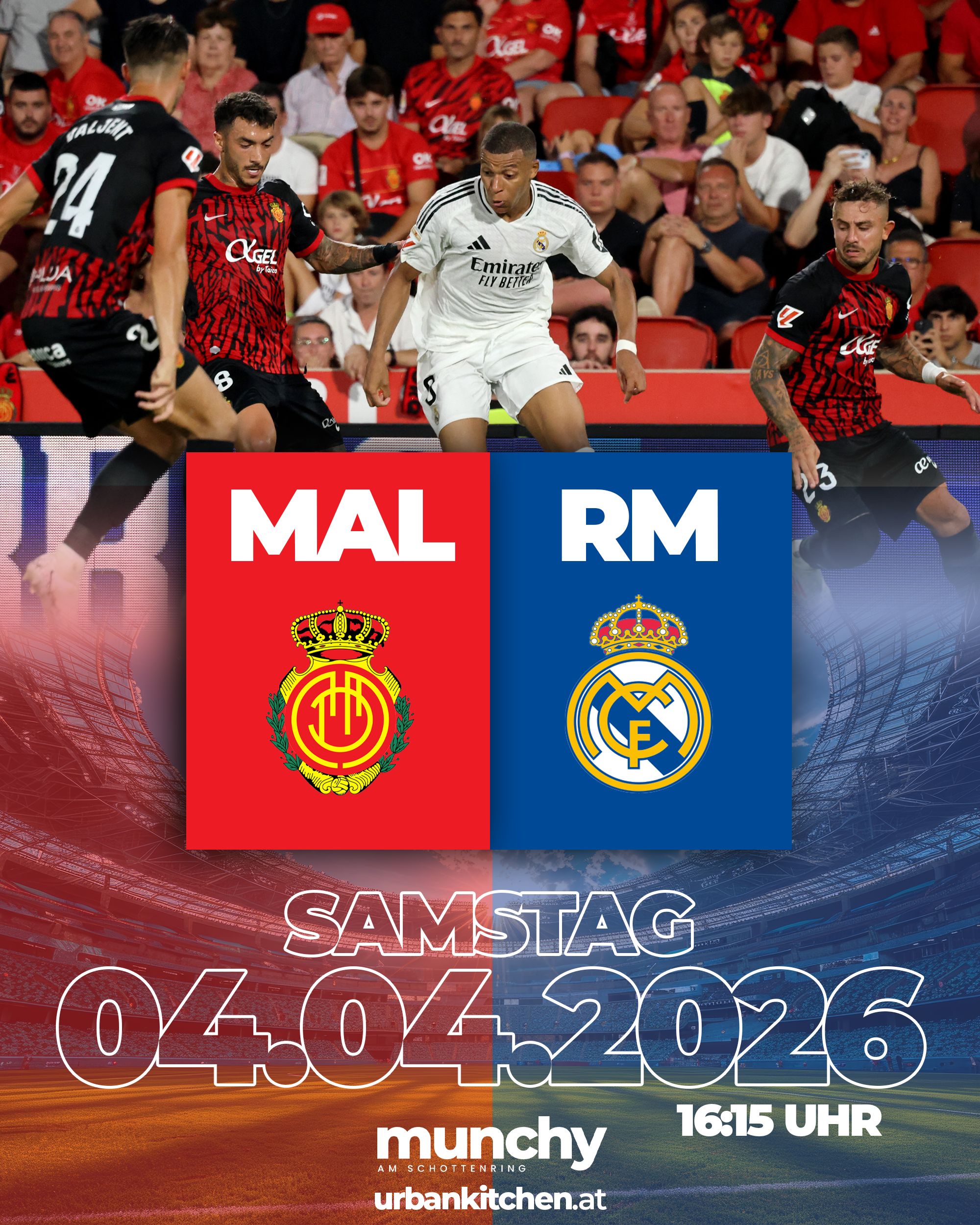 Erlebe Mallorca gegen Real Madrid live bei Munchy am Schottenring und genieße ein intensives LaLiga-Duell mit bester Atmosphäre, starken Drinks und echtem Matchday-Feeling mitten in Wien. |