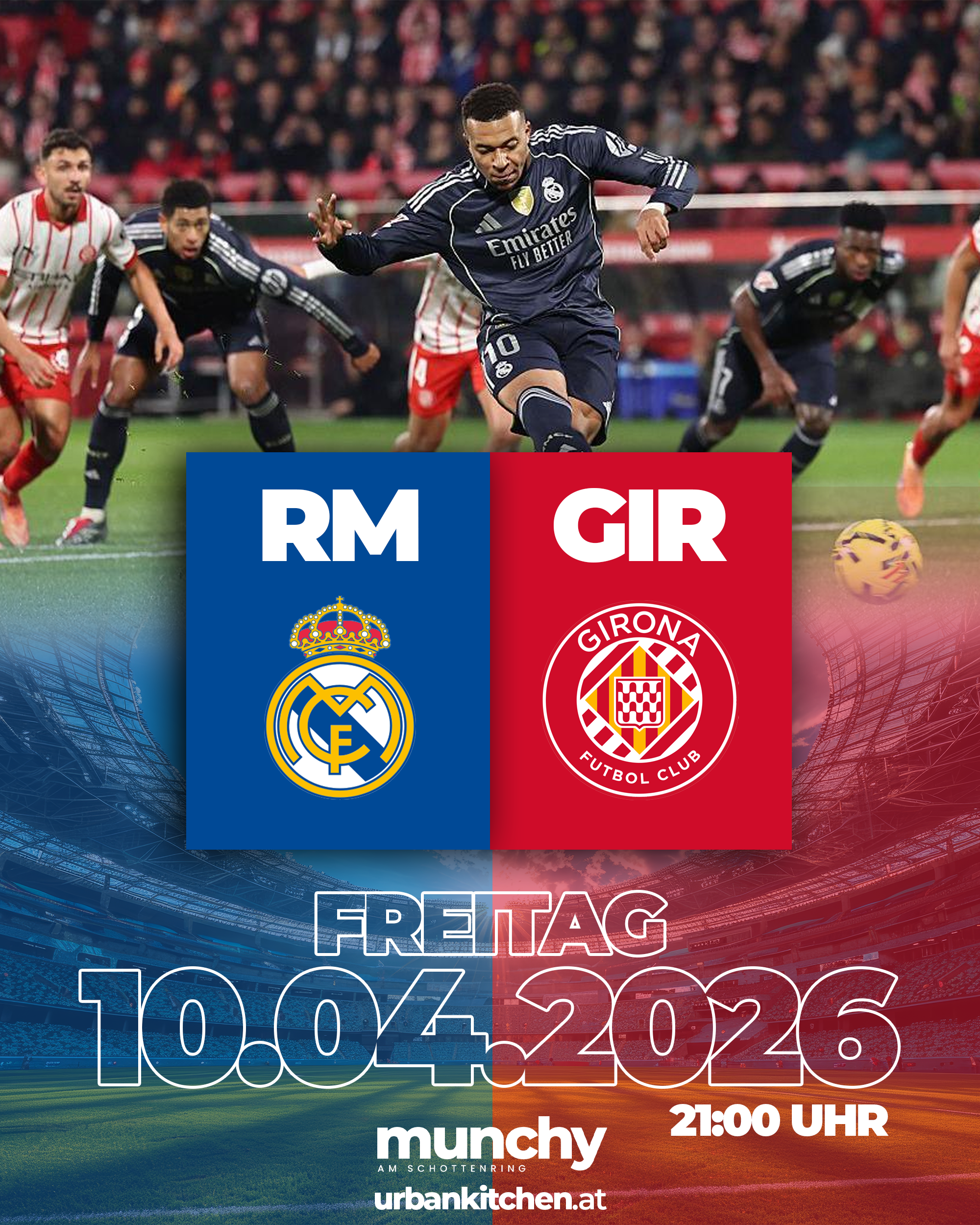Erlebe Real Madrid gegen Girona live bei Munchy am Schottenring und genieße ein intensives La Liga Duell mit elektrisierender Atmosphäre und echtem Stadionfeeling mitten in Wien. |