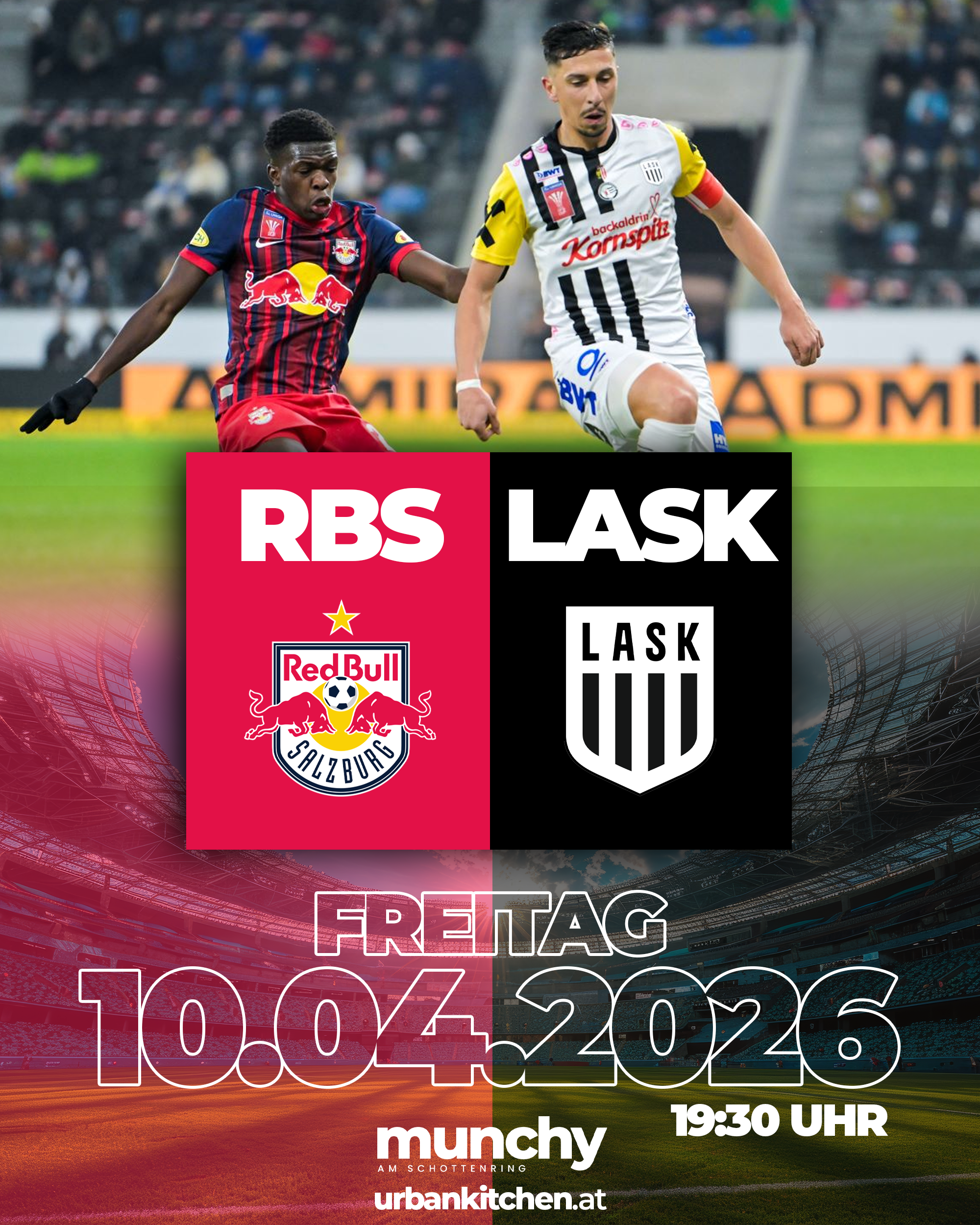 Erlebe Red Bull Salzburg gegen LASK live bei Munchy am Schottenring und genieße ein intensives Meistergruppe-Topspiel mit elektrisierender Atmosphäre und echtem Stadionfeeling mitten in Wien.