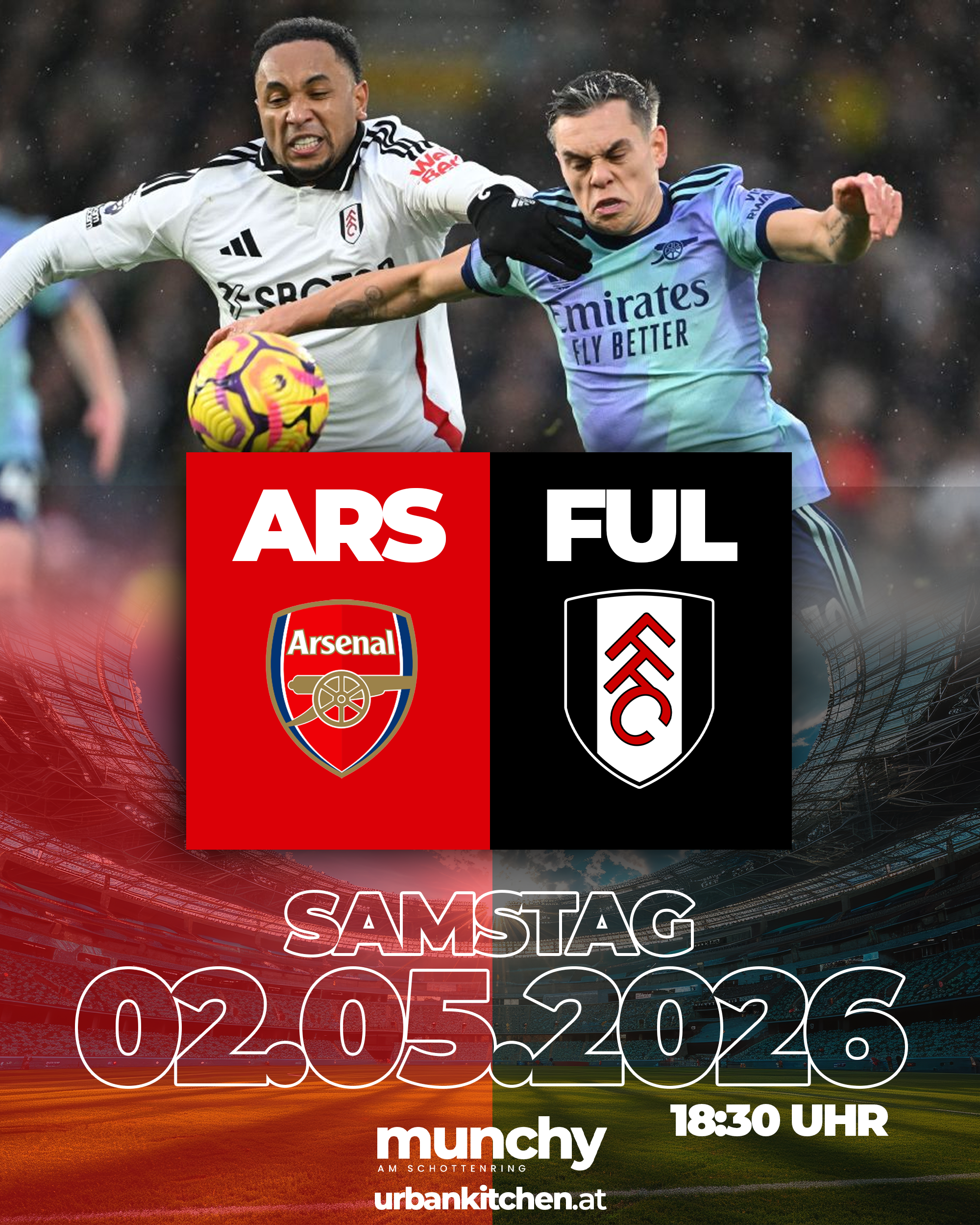Arsenal gegen Fulham im Munchy am Schottenring – pure Spannung, volle Energie und echtes Stadiongefühl mitten in Wien.
