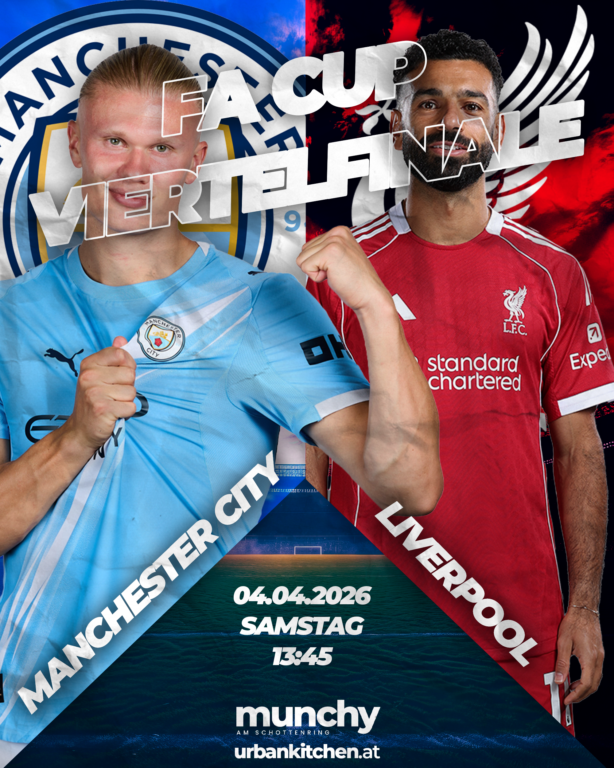 Erlebe Manchester City gegen Liverpool in intensiver Stadionatmosphäre mit großen Screens, starkem Sound und echter Matchday-Energie live im Munchy am Schottenring.