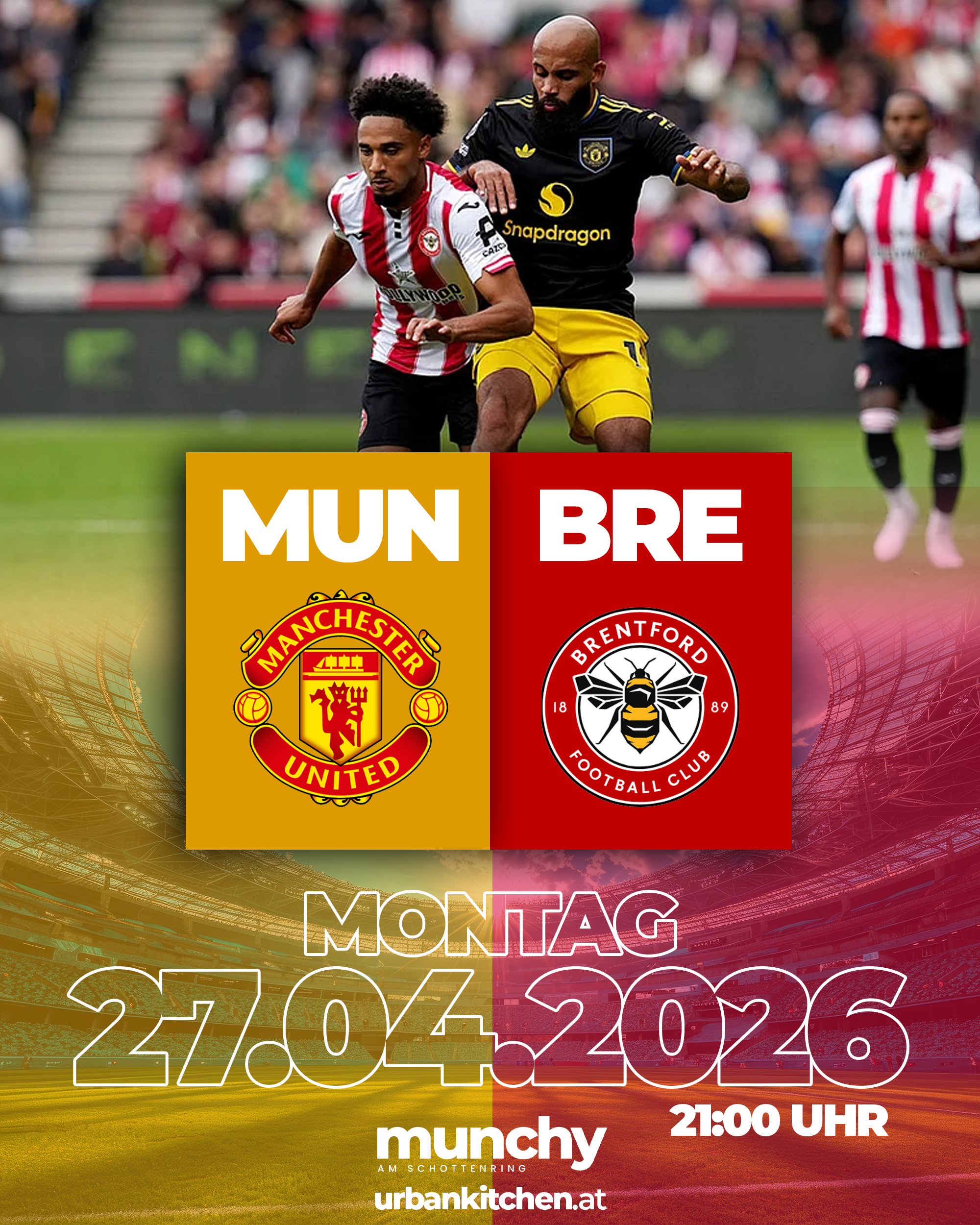 Erlebe Manchester United gegen Brentford live bei Munchy am Schottenring – mit Premier-League-Intensity, voller Atmosphäre und perfektem Matchday Vibe. |