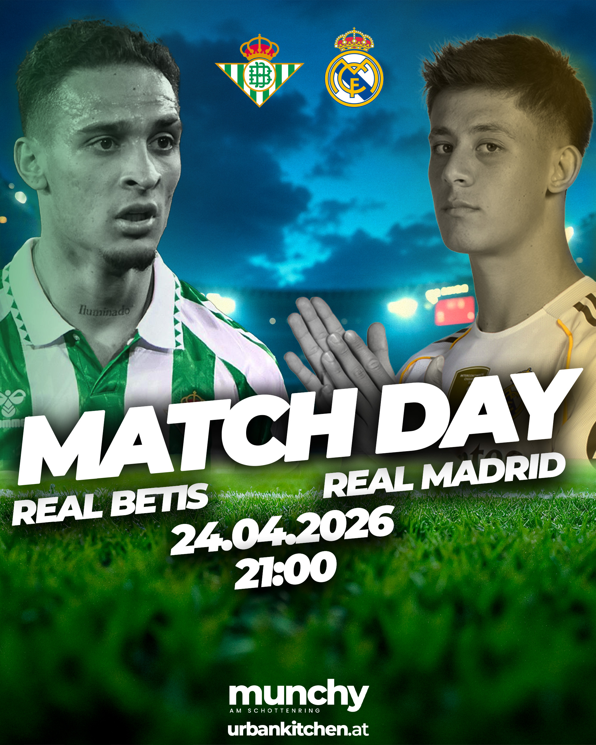 Erlebe das Top-Duell Real Betis gegen Real Madrid live bei Munchy am Schottenring – mit Stadion-Atmosphäre, starken Plays und perfektem Game-Night Vibe. |