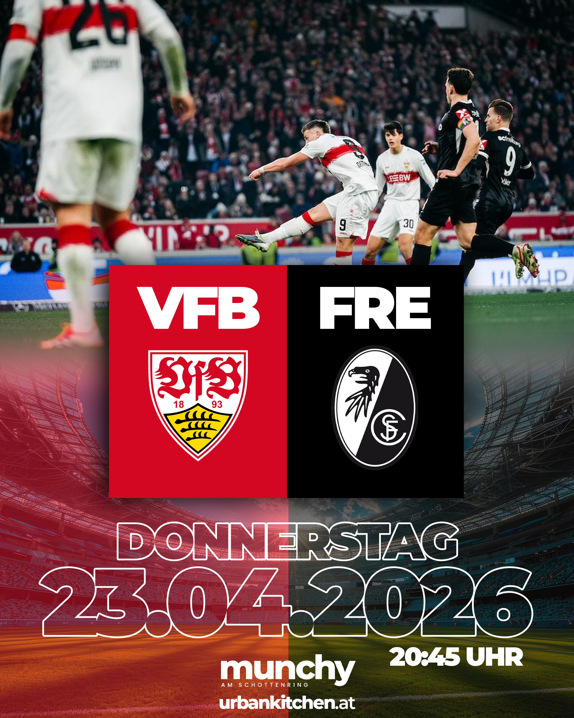 Erlebe VfB Stuttgart gegen SC Freiburg in intensiver Stadionatmosphäre live im Munchy am Schottenring. |