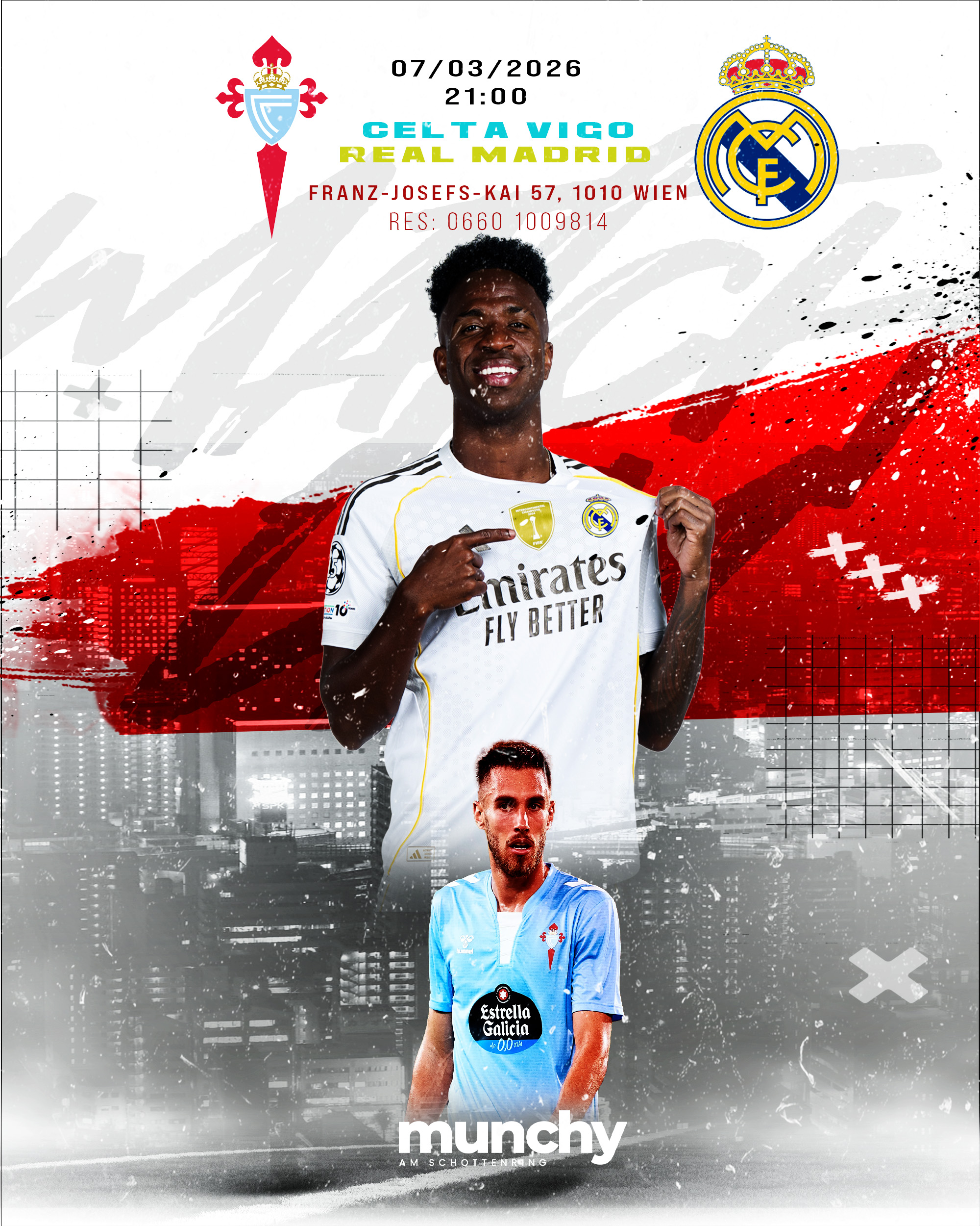 Munchy am Schottenring bringt dir Celta Vigo gegen Real Madrid mit LaLiga-Atmosphäre, großen Screens und echter Matchday-Energie direkt ins Herz von Wien.